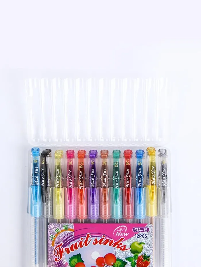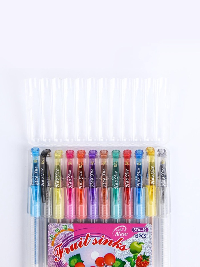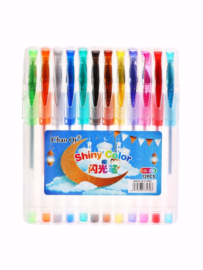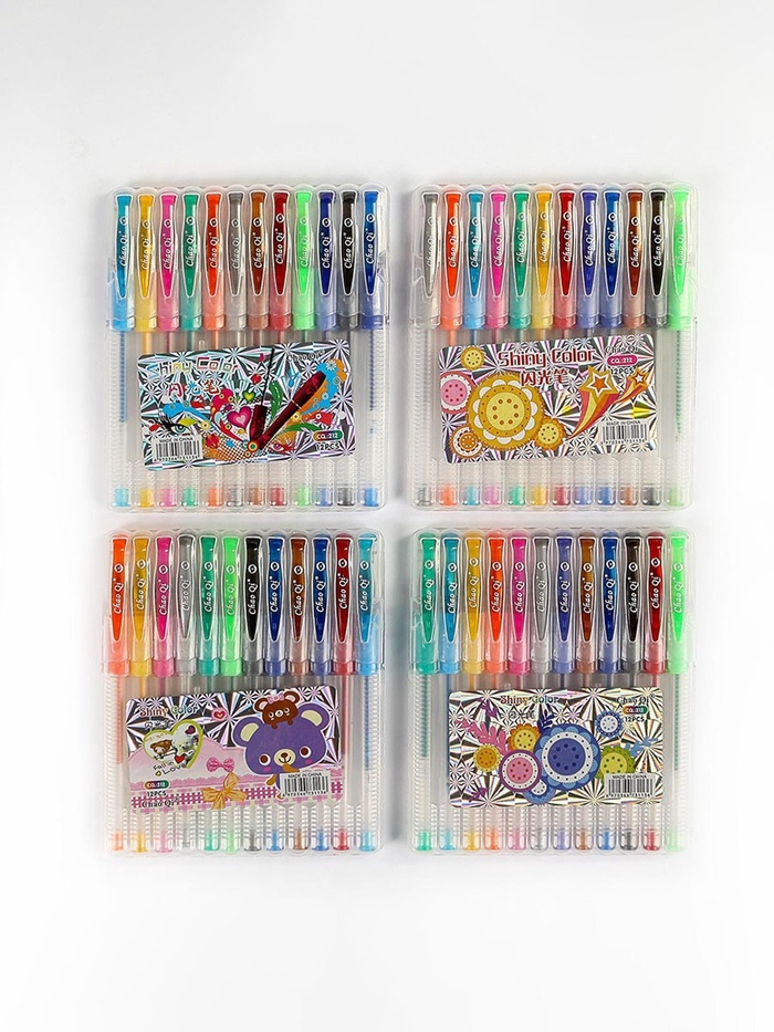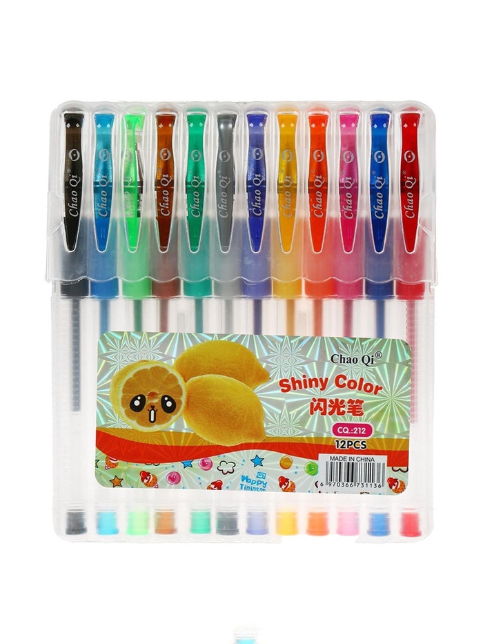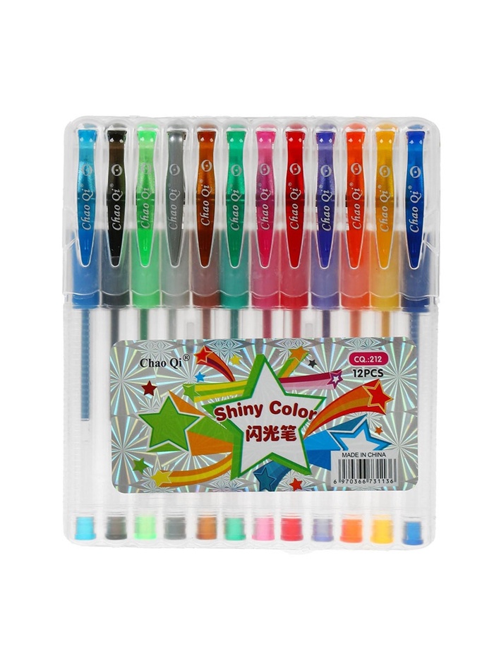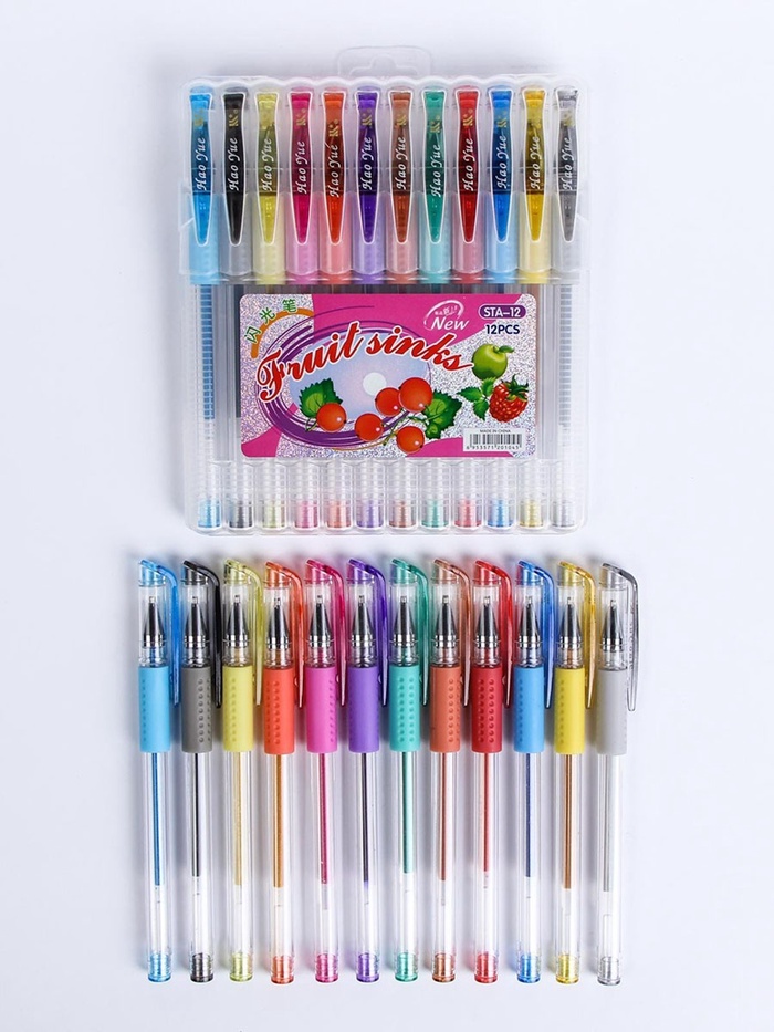 Набор гелевых ручек, 12 цветов, с блестками, с резиновым держателем, в пластиковой коробке — Характеристики