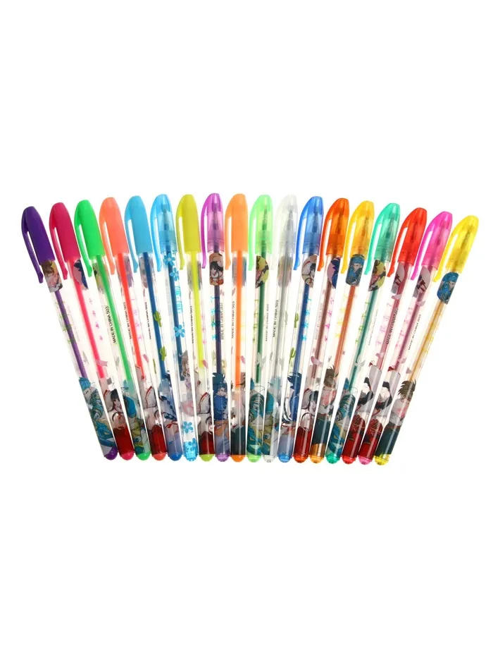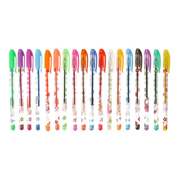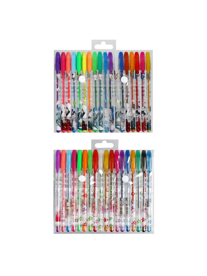 Ручка имеет круглый корпус.Гелевая консистенция чернил равномерно распределяется по бумаге и быстро сохнет.Сменный стержень длиной 135 мм со стандартным наконечником позволит использовать ручку максимально долго.Гладкое скольжение пишущего узла, удобный корпус и доказанная надёжность делает такие ручки одними из самых популярных письменных принадлежностей среди детей и взрослых.Набор включает гелевые ручки из 18 различных цветов.Придайте с помощью ярких чернил своему письму уникальность и отличное настроение!