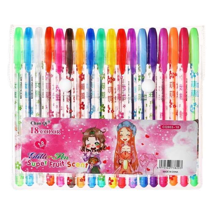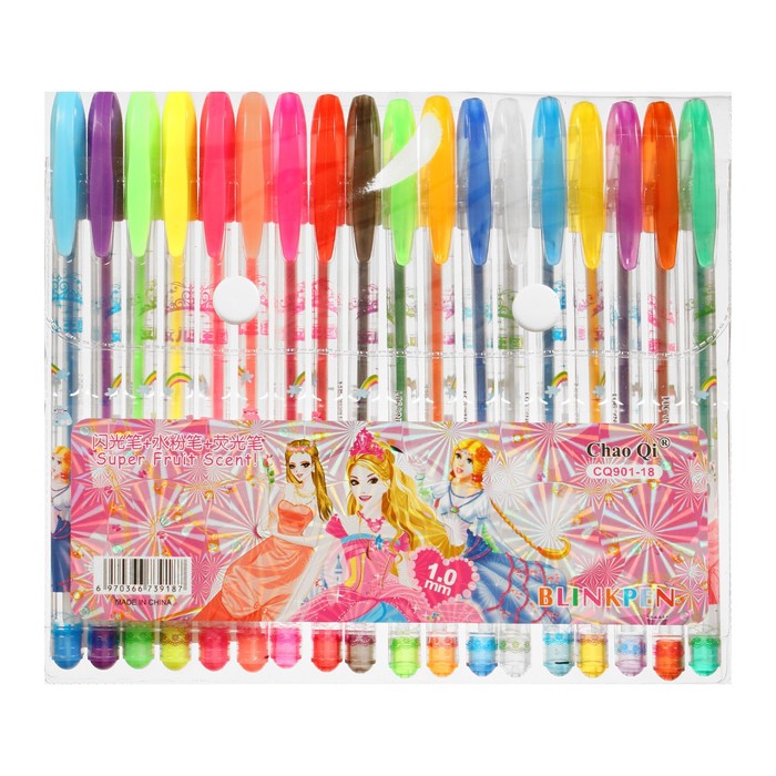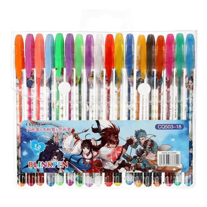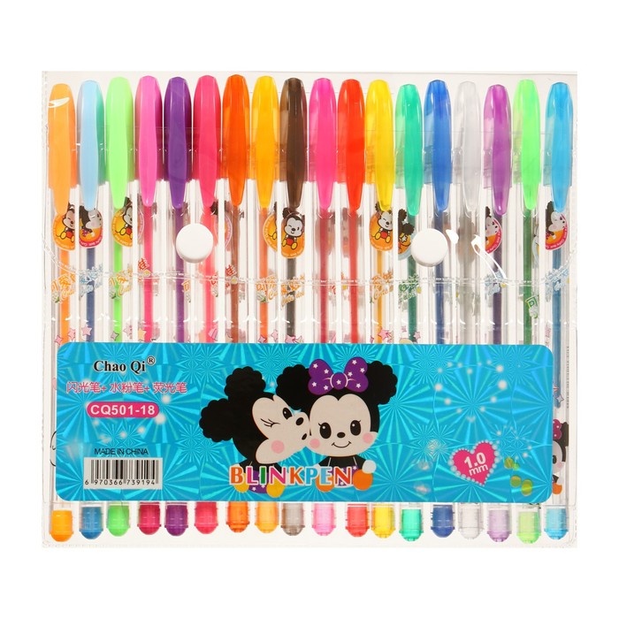 Набор гелевых ручек, 18 цветов, металлик, корпус с рисунком, в блистере на кнопке — Характеристики