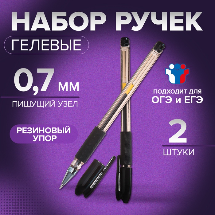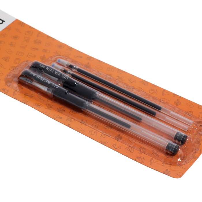 Набор гелевых ручек, 2 штуки, чёрные, в комплекте со стержнями 2 штуки, на блистере — Характеристики