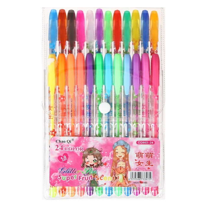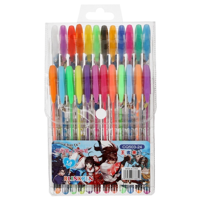 Набор гелевых ручек, 24 цвета, металлик, корпус с рисунком, в блистере на кнопке — Характеристики
