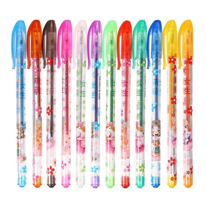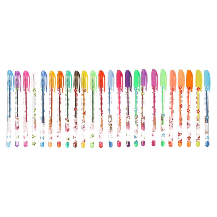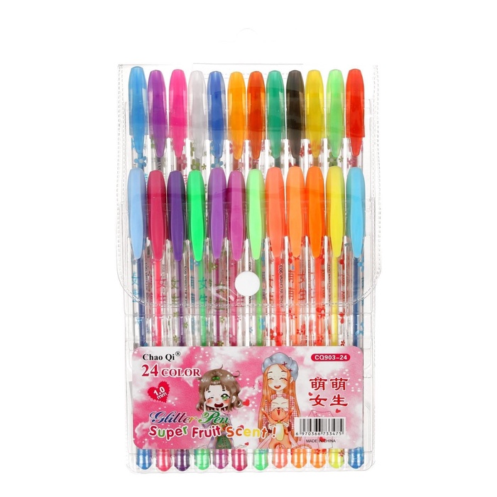 Ручка имеет круглый корпус.Гелевая консистенция чернил равномерно распределяется по бумаге и быстро сохнет.Сменный стержень позволит использовать ручку максимально долго.Гладкое скольжение пишущего узла, удобный корпус и доказанная надёжность делает такие ручки одними из самых популярных письменных принадлежностей среди детей и взрослых.Набор включает гелевые ручки из 24 различных цветов.Придайте с помощью ярких чернил своему письму уникальность и отличное настроение!