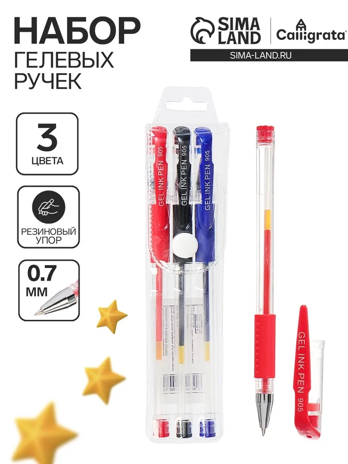 Набор гелевых ручек, 3 цвета, с резиновыми держателями, в блистере — Характеристики