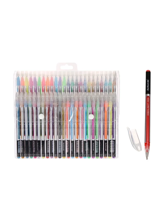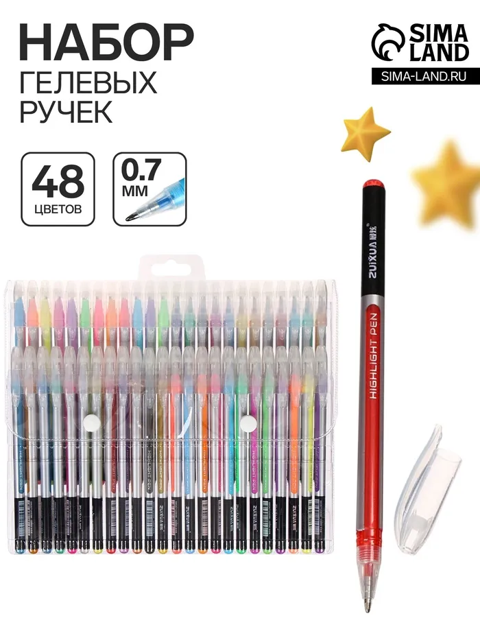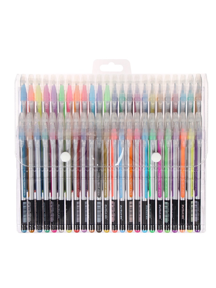 Ручка имеет круглый корпус.Гелевая консистенция чернил равномерно распределяется по бумаге и быстро сохнет.Сменный стержень позволит использовать ручку максимально долго.Гладкое скольжение пишущего узла, удобный корпус и доказанная надёжность делает такие ручки одними из самых популярных письменных принадлежностей среди детей и взрослых.Набор включает гелевые ручки из 24 различных цветов.Придайте с помощью ярких чернил своему письму уникальность и отличное настроение!