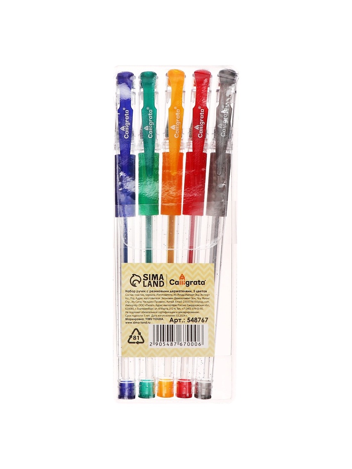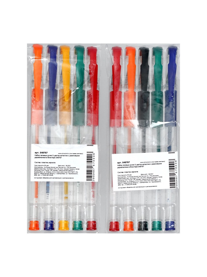 Набор гелевых ручек, 5 цветов, металлик,с резиновыми держателями, МИКС — Характеристики