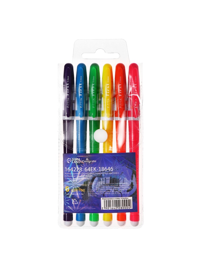 Набор гелевых ручек, 6 цветов, корпус цветной с белыми вставками, в блистере — Характеристики