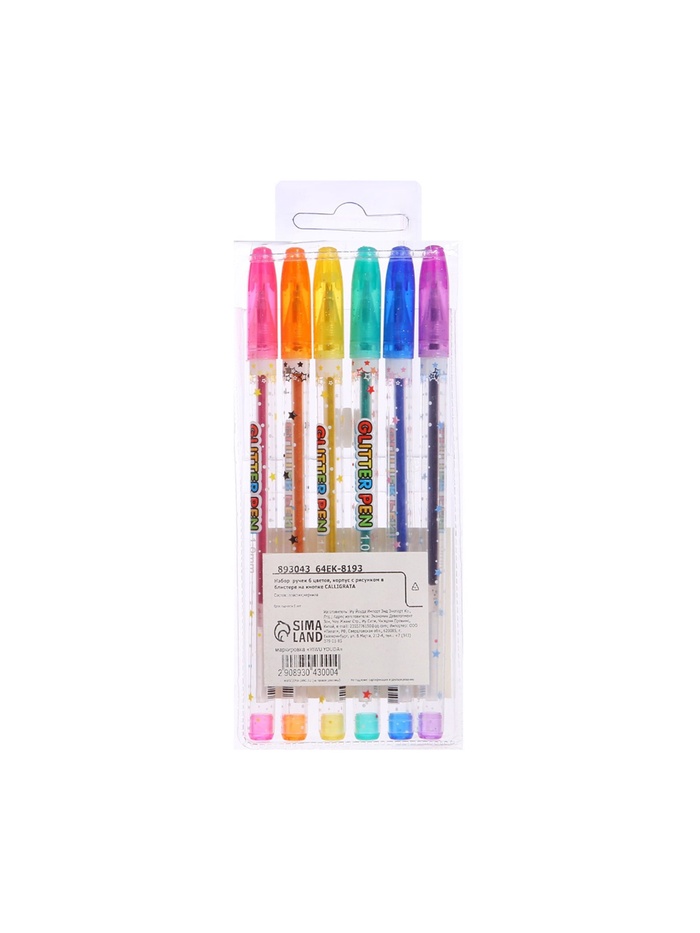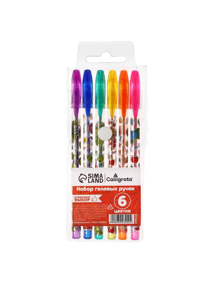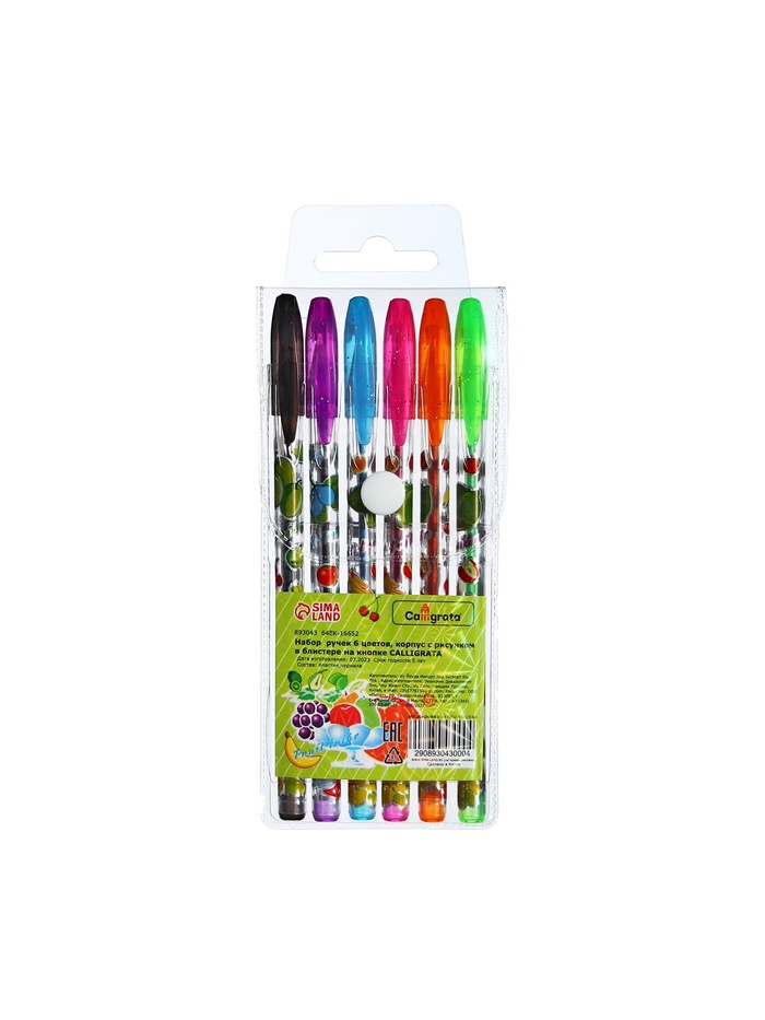 Набор гелевых ручек, 6 цветов, металлик, корпус с рисунком, в блистере на кнопке — Характеристики