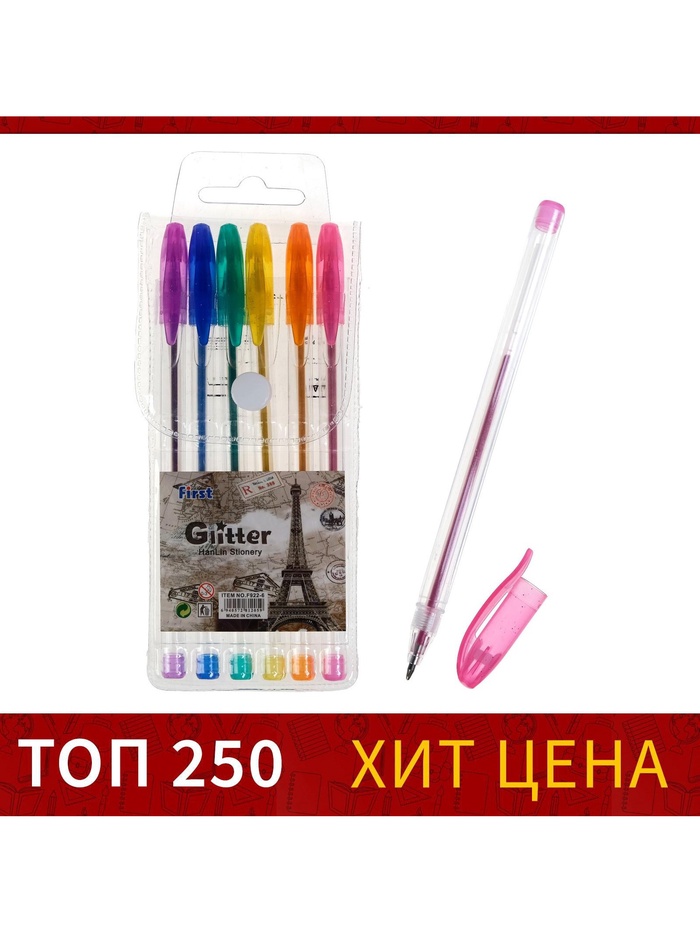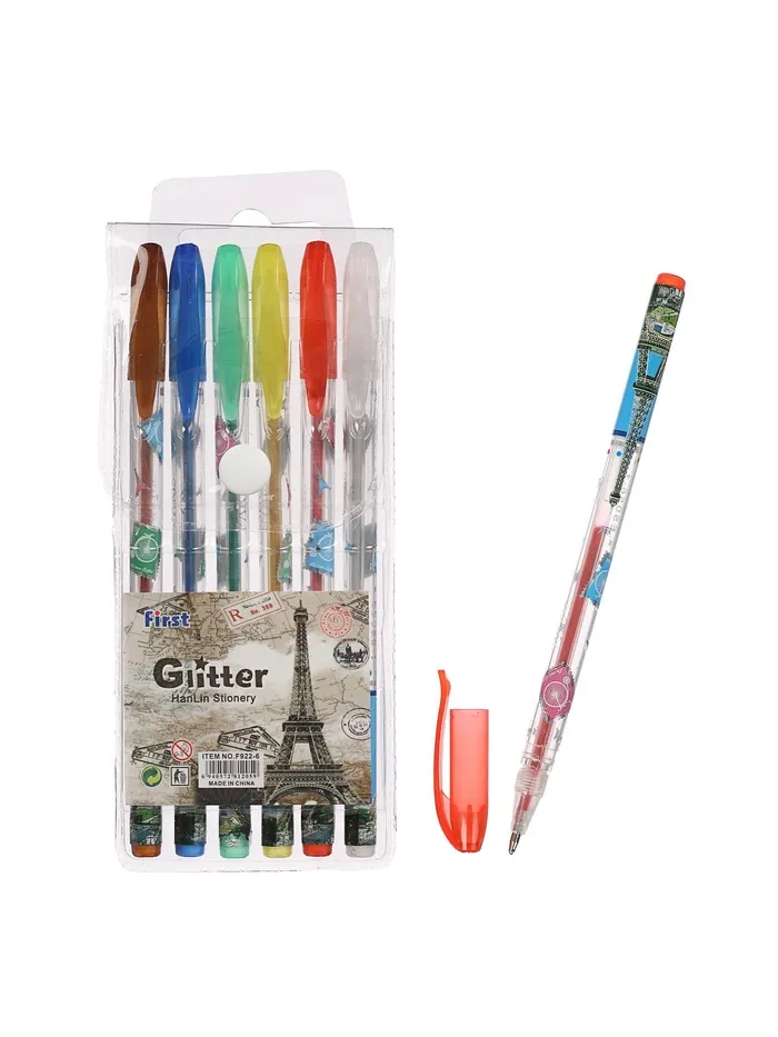 Набор гелевых ручек, 6 цветов, металлик, с блёстками, в блистере — Характеристики