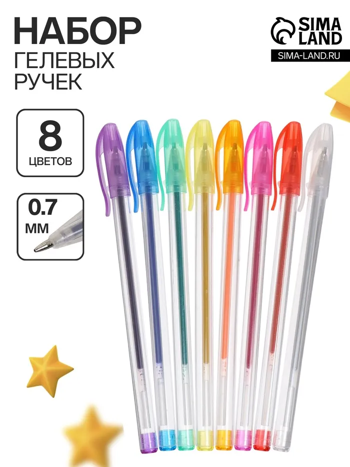 Ручка имеет круглый корпус.Гелевая консистенция чернил равномерно распределяется по бумаге и быстро сохнет.Сменный стержень позволит использовать ручку максимально долго.Гладкое скольжение пишущего узла, удобный корпус и доказанная надёжность делает такие ручки одними из самых популярных письменных принадлежностей среди детей и взрослых.Набор включает гелевые ручки из 8 различных цветов.Придайте с помощью ярких чернил своему письму уникальность и отличное настроение!