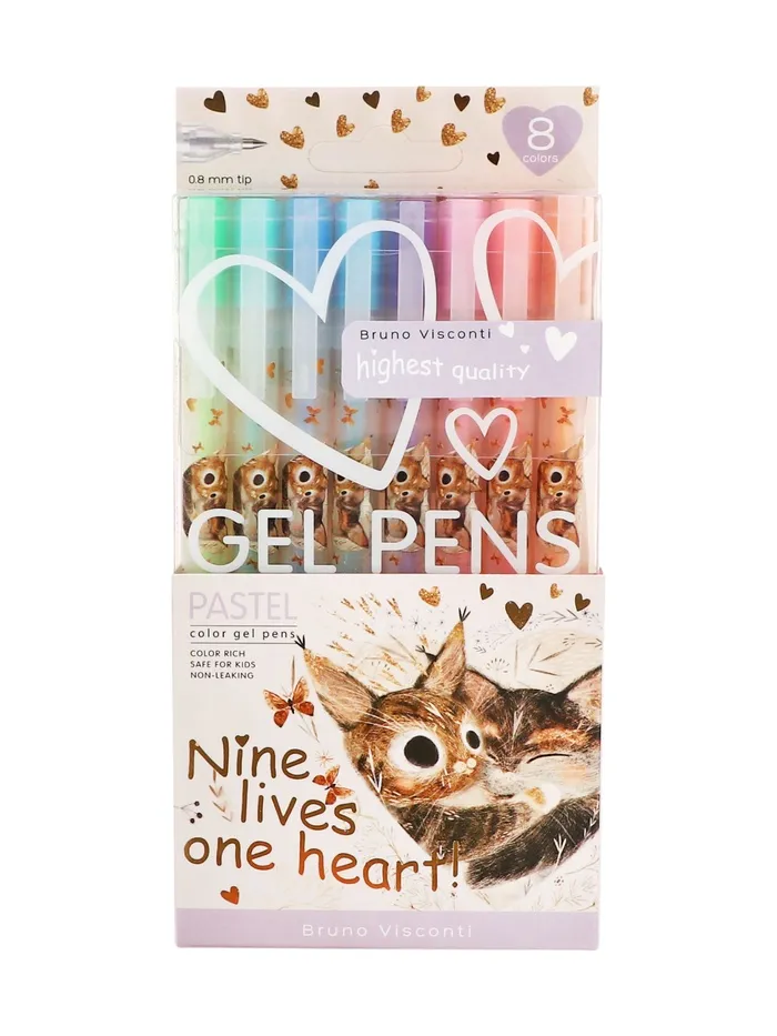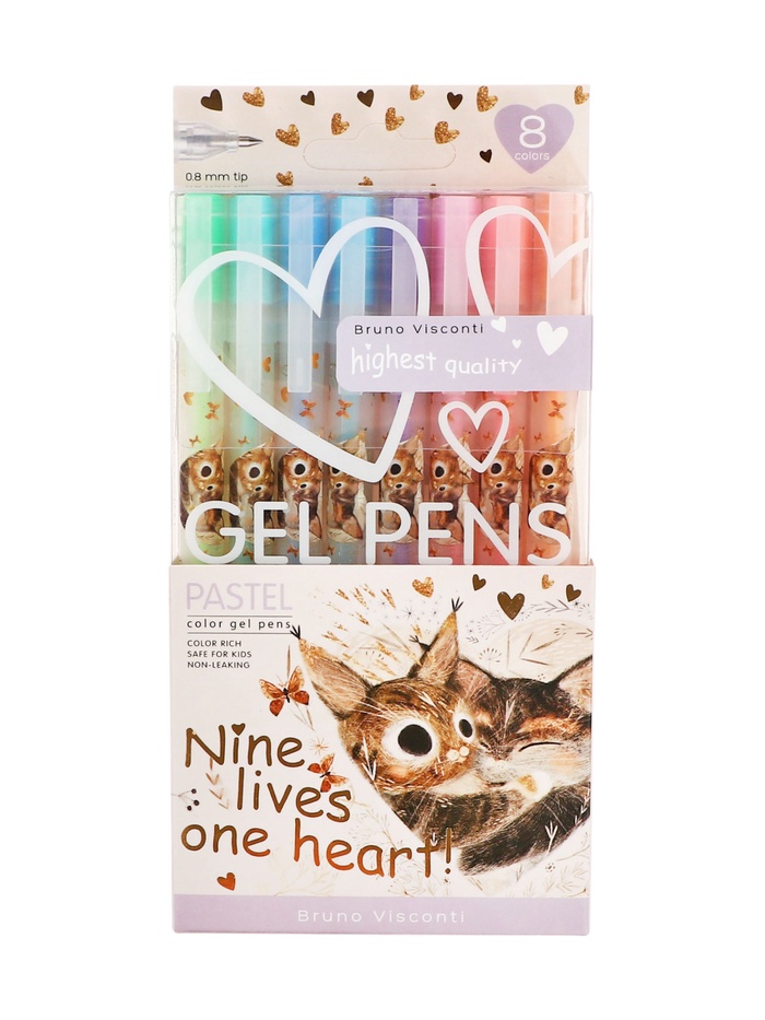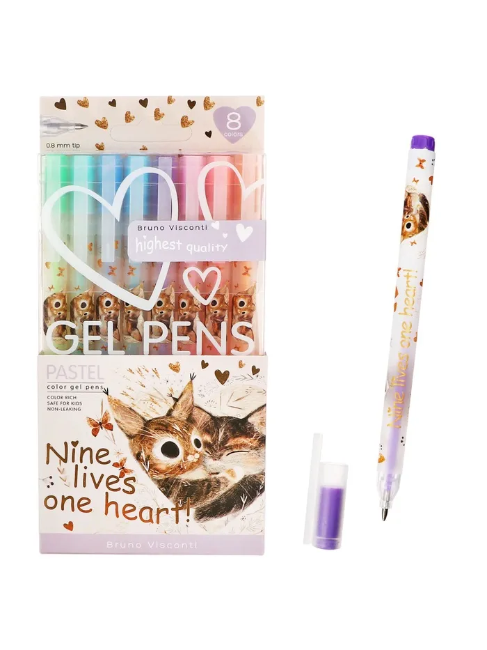 Набор гелевых ручек 8цв PASTELS.LOVE ME. Котики приносят счастье, 0.8мм