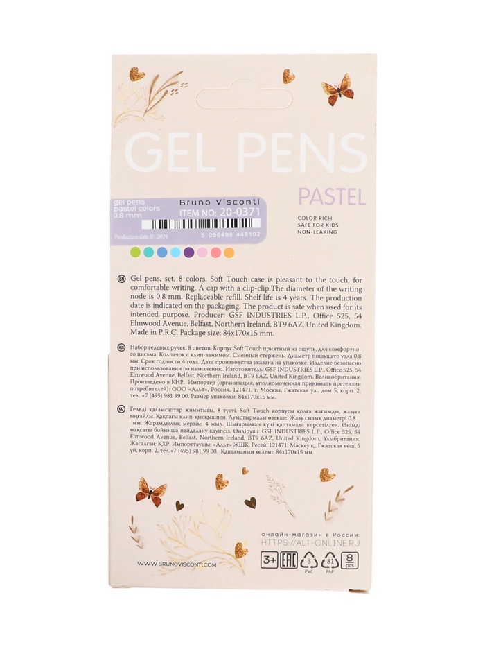 Набор гелевых ручек 8цв PASTELS.LOVE ME. Котики приносят счастье, 0.8мм — Характеристики