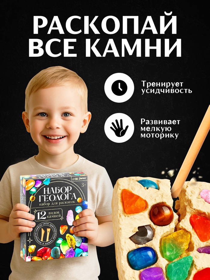 Ваш ребёнок мечтает найти удивительные драгоценные камни и редкие природные минералы? Тогда этот набор для геологических раскопок точно не оставит равнодушным любознательного исследователя.