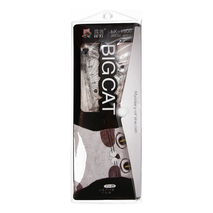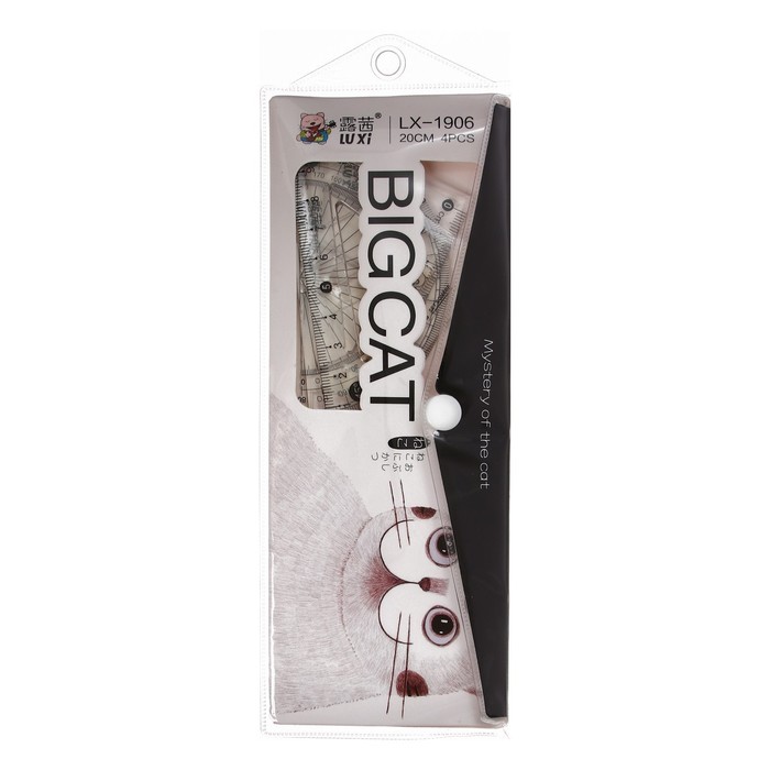 Набор геометрический "Котик"(линейка, транспортир, 2 угольника) в пенале, МИКС — Характеристики