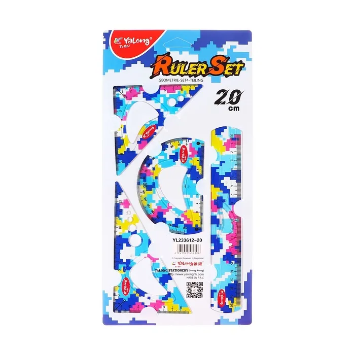 Набор геометрический пластик (линейка 20см+2 угольника+транспортир) Пиксели — Характеристики