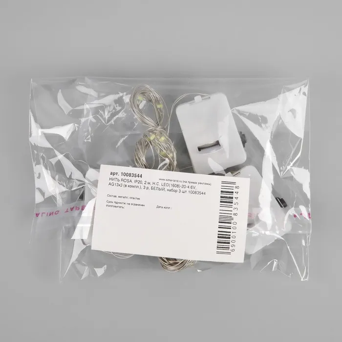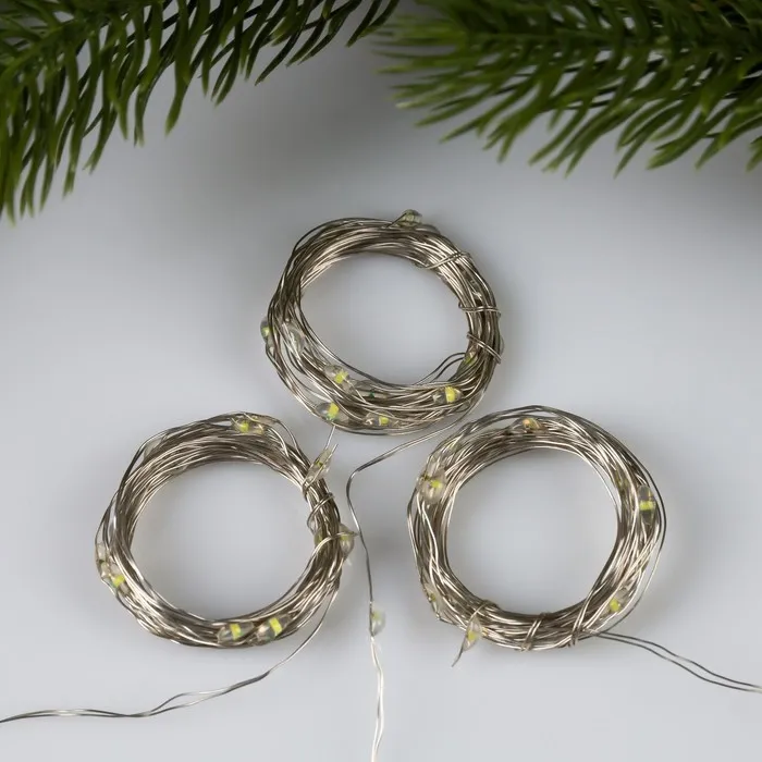 Набор гирлянд «Нить» 2 м роса, IP20, серебристая нить, 20 LED, свечение белое, 3 режима, батарейки AG13х3 (в комплекте), 3 шт. — Характеристики