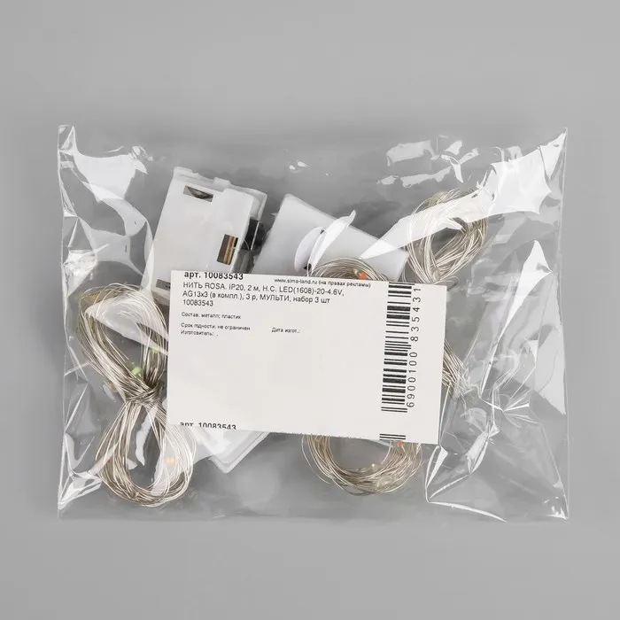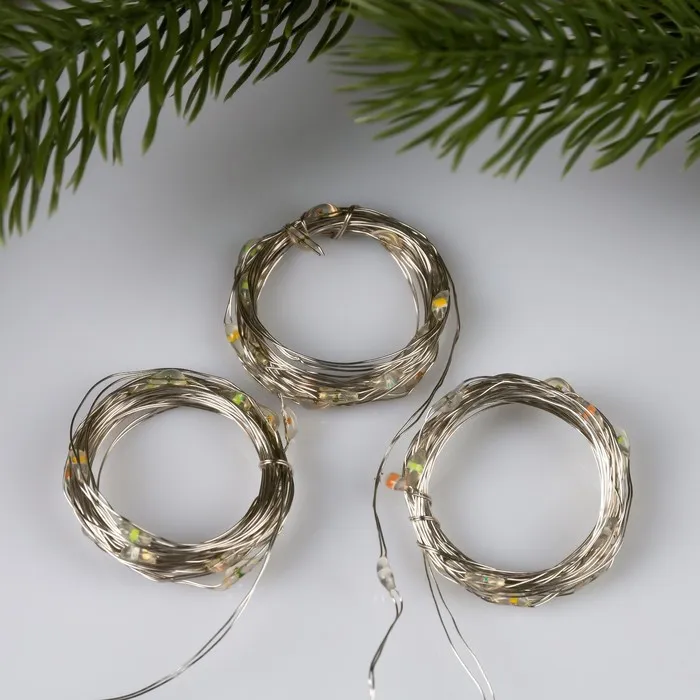 Набор гирлянд «Нить» 2 м роса, IP20, серебристая нить, 20 LED, свечение мульти, 3 режима, батарейки AG13х3 (в комплекте), 3 шт. — Характеристики