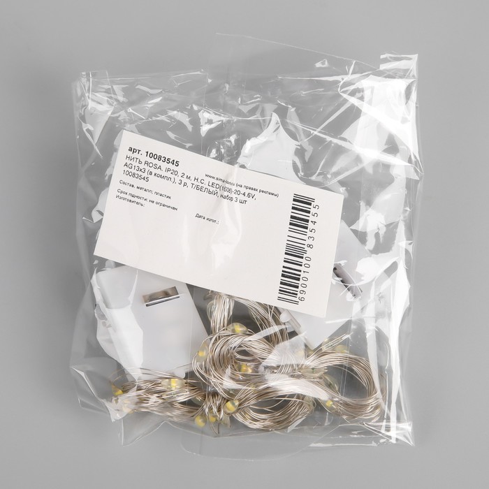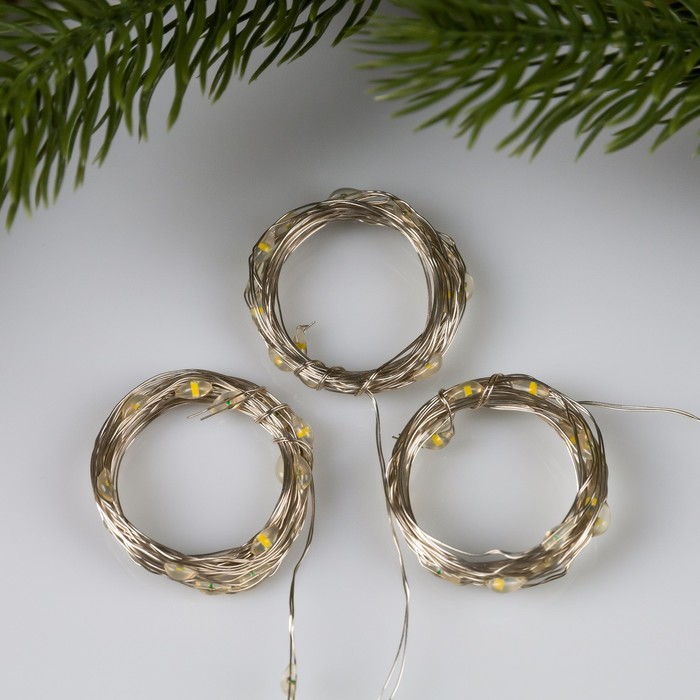 Набор гирлянд «Нить» 2 м роса, IP20, серебристая нить, 20 LED, свечение тёплое белое, 3 режима, батарейки AG13×3 (в комплекте), 3 шт. — Характеристики