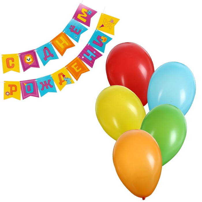 Набор гирлянда бумажная «Весёлые животные» + шарики набор 5 штук — Характеристики