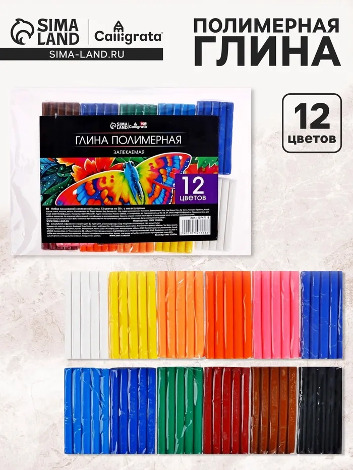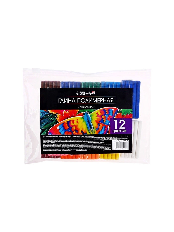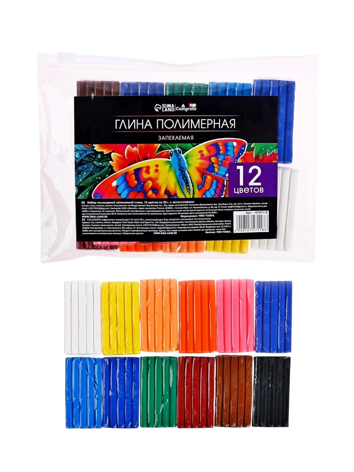 Набор глина полимерная запекаемая, 12 цветов по 20 г, в пакете — Характеристики