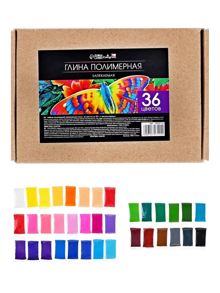 Набор глина полимерная запекаемая, 36 цветов по 20 г, с аксессуарами, в гофрокоробе — Характеристики