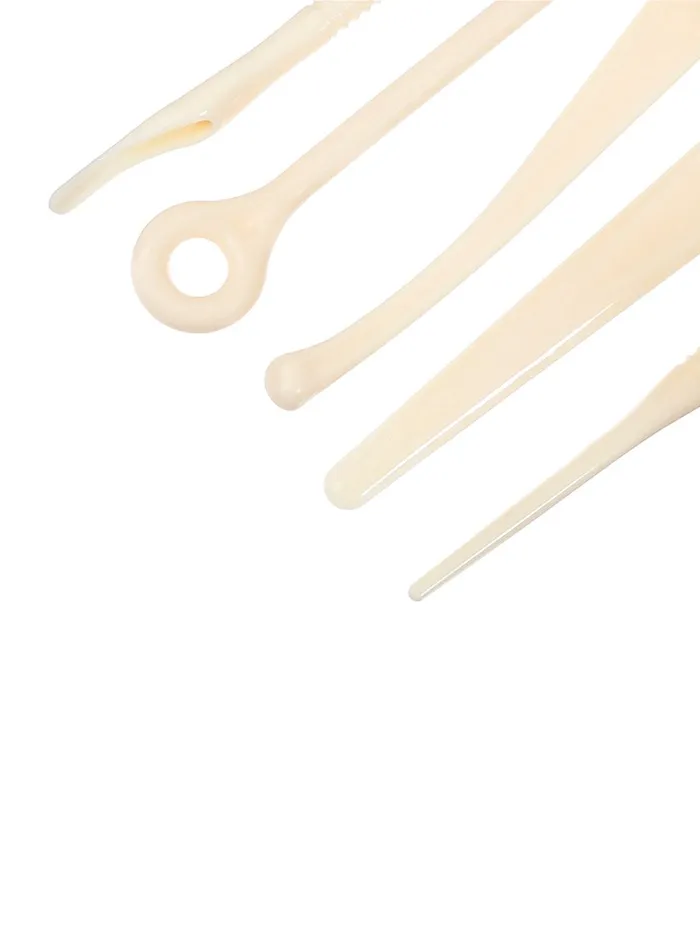 - 48 предметов в наборе — все необходимые инструменты: стеки, текстурные пластины, формочки и аксессуары для детализации, глина