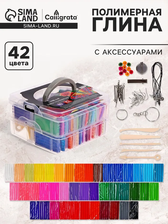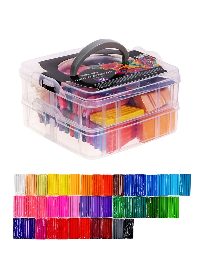 Набор глина полимерная запекаемая, 42 цвета по 20 г, с аксессуарамив кейсе — Характеристики