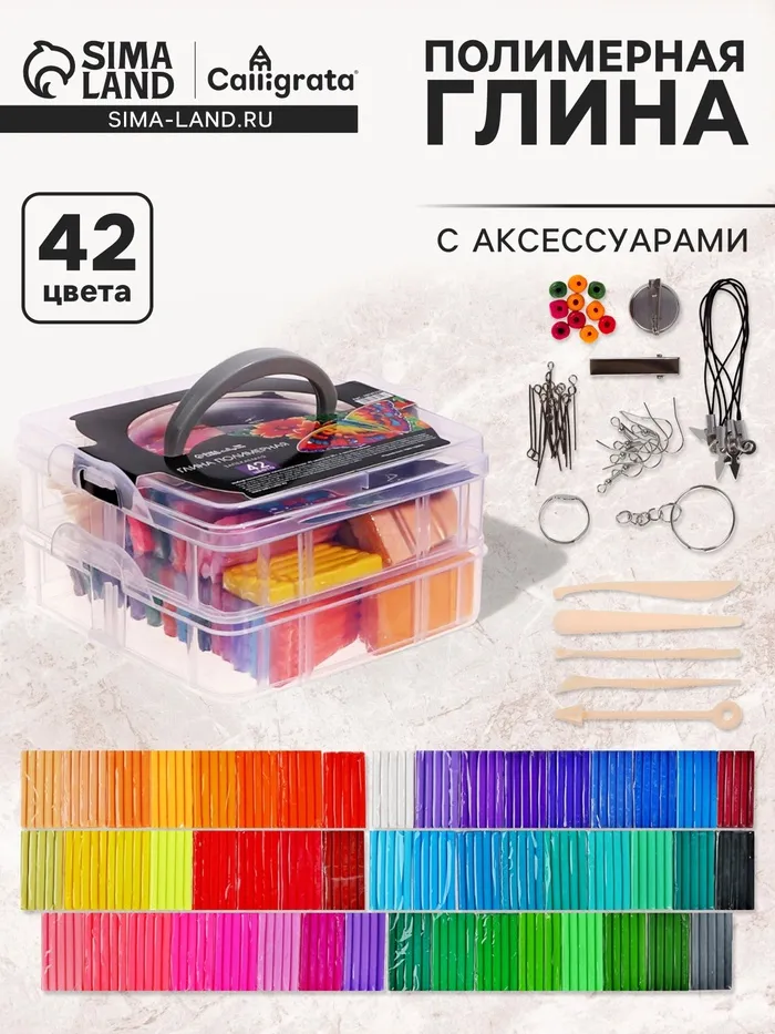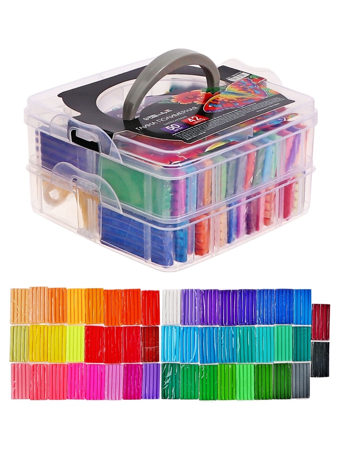 Набор глина полимерная запекаемая, 50 штук, 42 цвета по 20 г, с аксессуарамив кейсе — Характеристики
