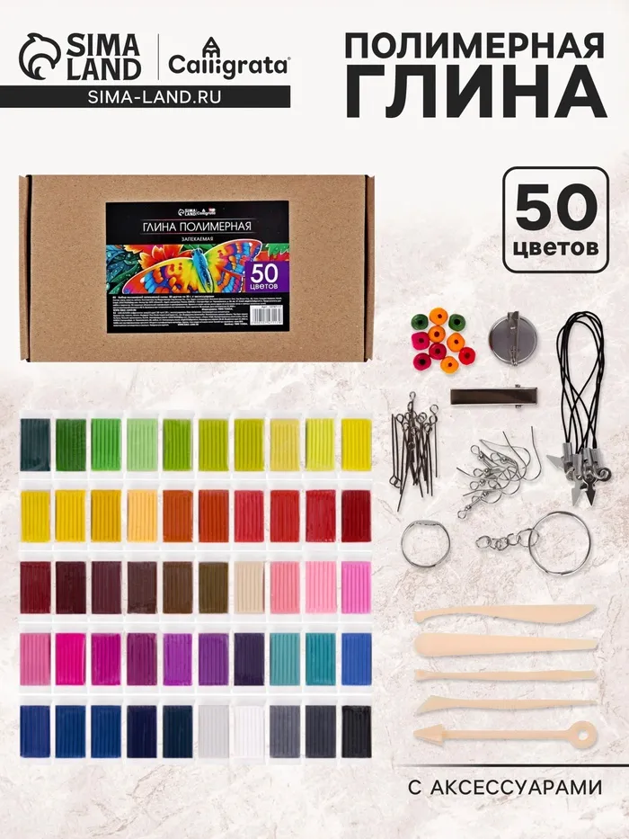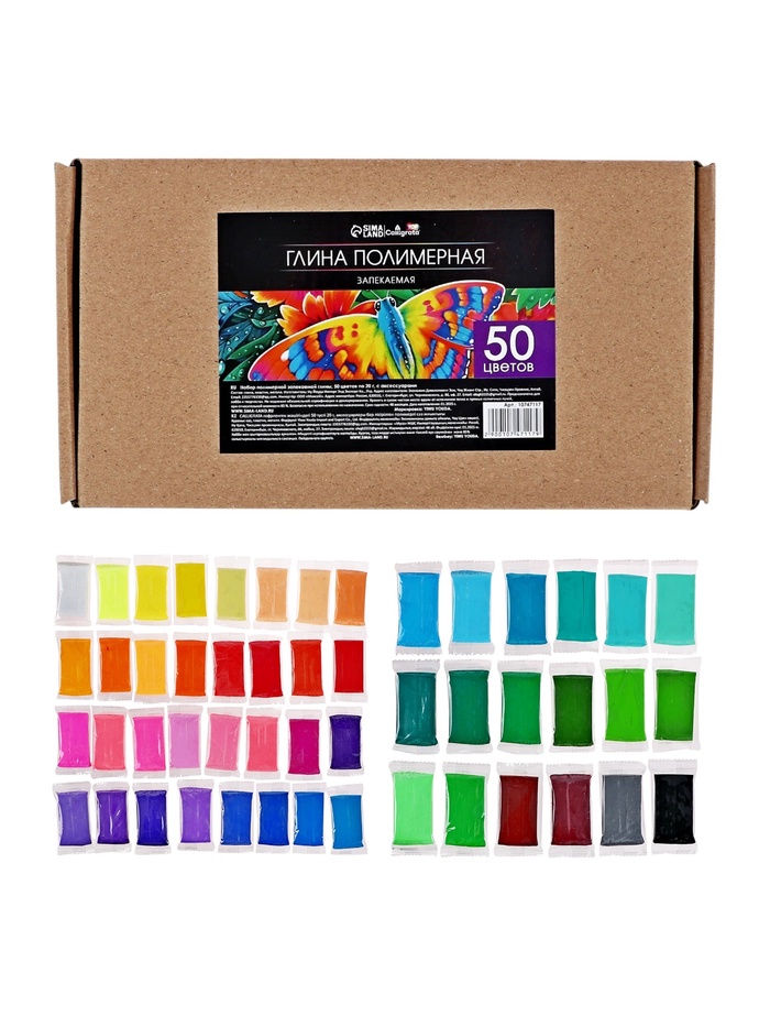Набор глина полимерная запекаемая, 50 цветов по 20 г, с аксессуарами, в гофрокоробе — Характеристики
