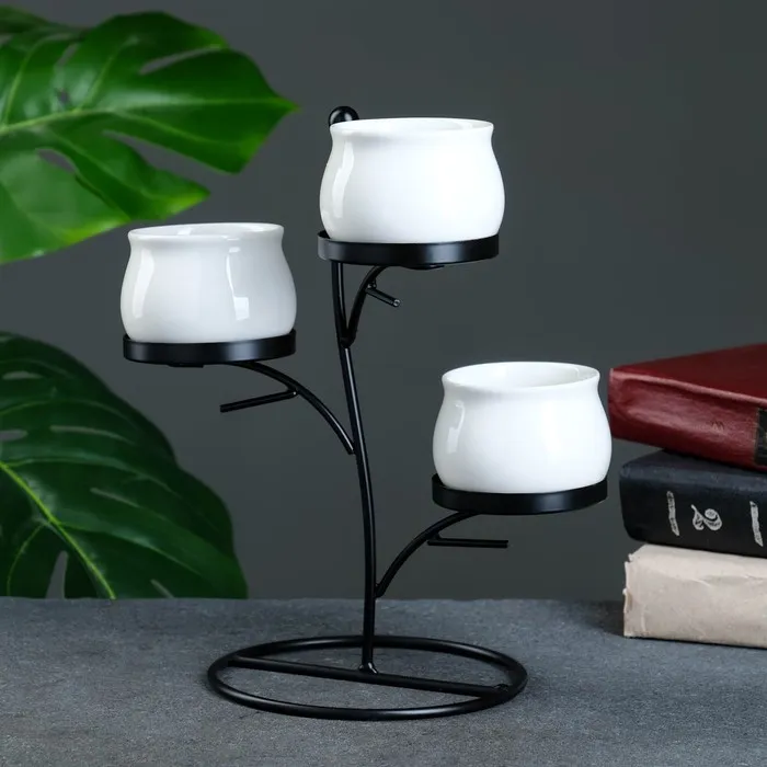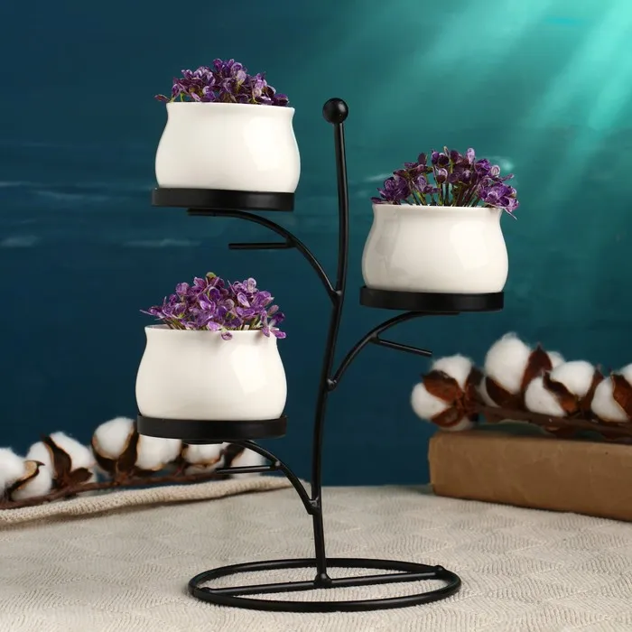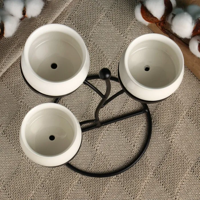 Набор горшков для цветов «Дерево», 3 шт., 170 мл, 24×15×21 см, керамика, белые, на чёрной металлической подставке — Характеристики