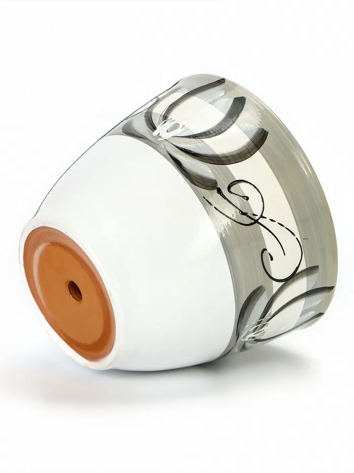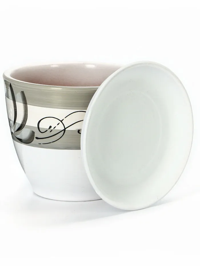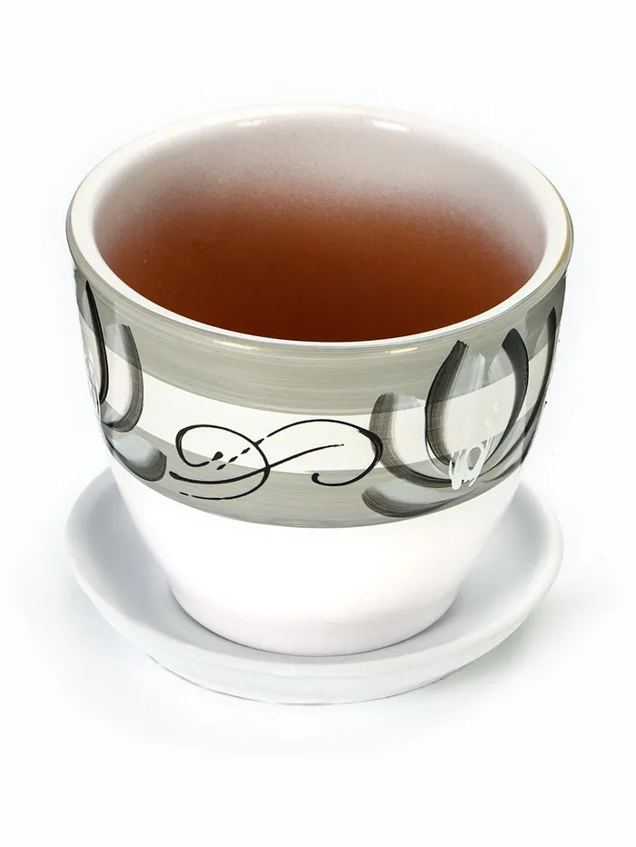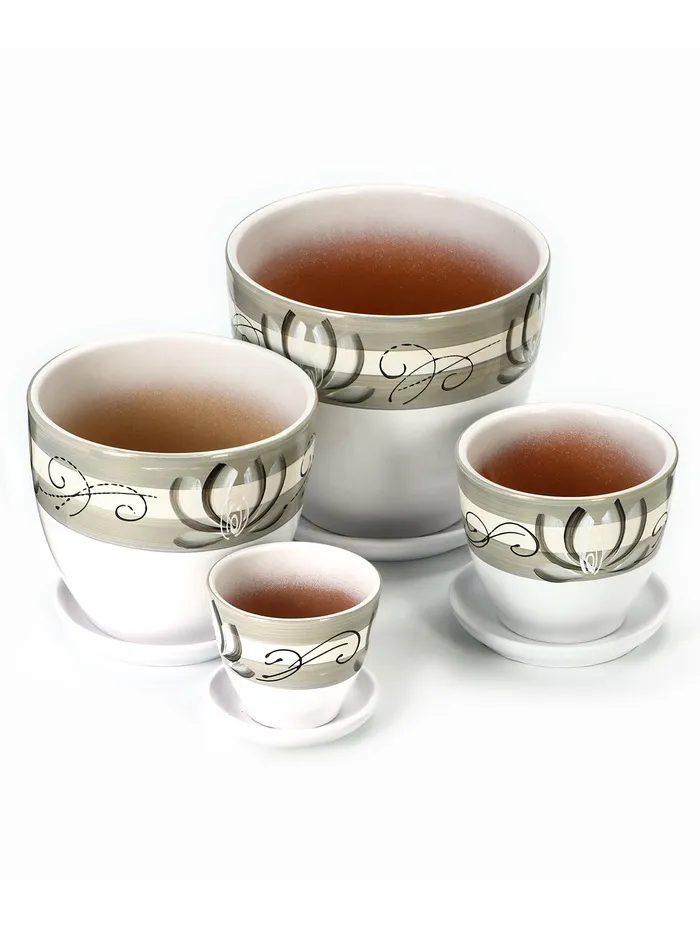 Набор горшков для цветов «Лотос», 4 шт., с поддоном, 0.4 / 1 / 2.5 / 5 л, керамика, белые с зелёными полосками — Характеристики