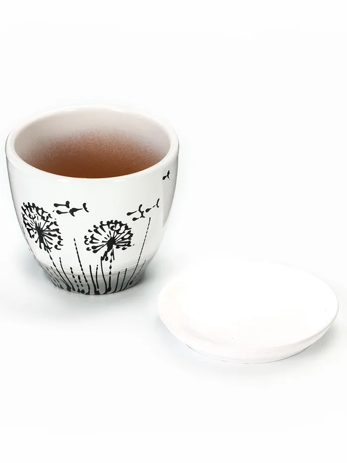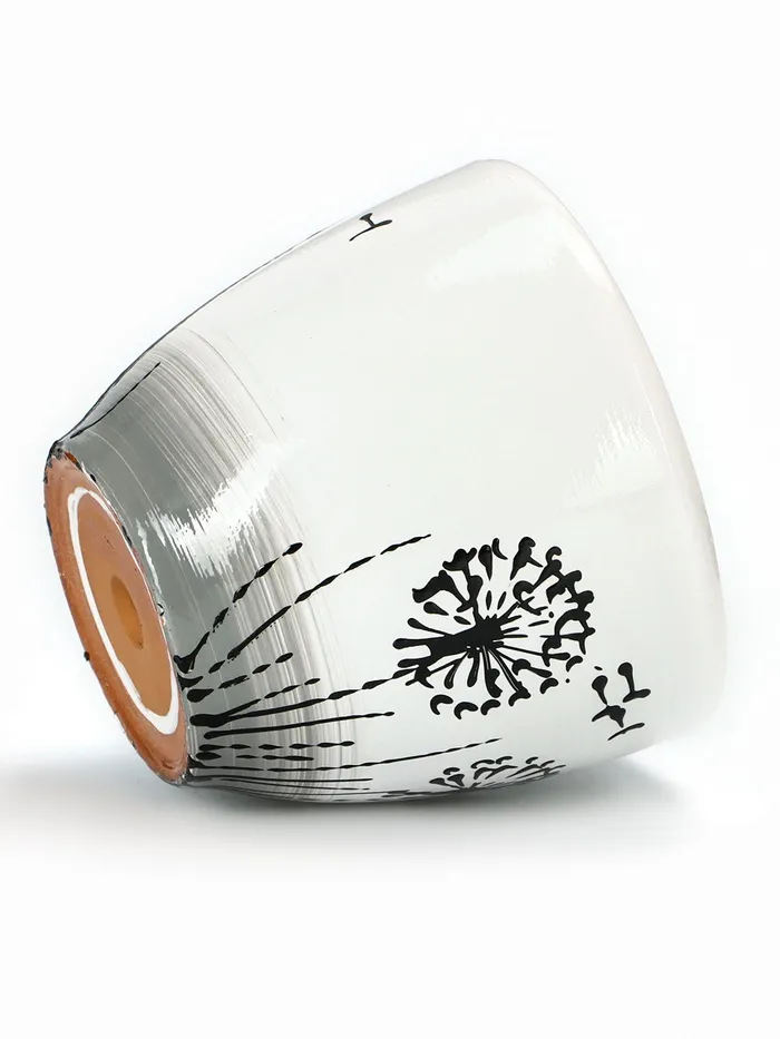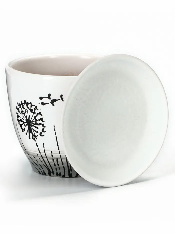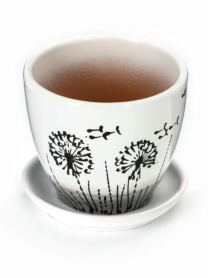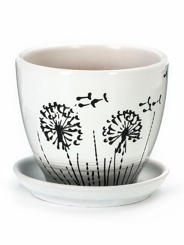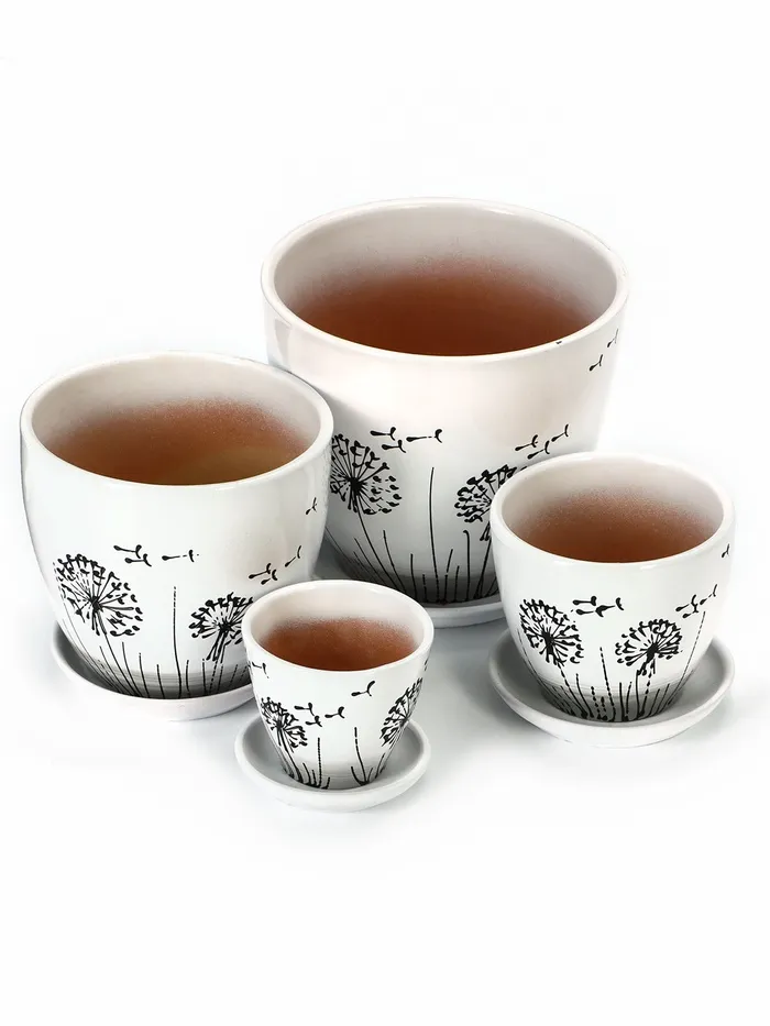 Набор горшков для цветов «Одуванчик», 4 шт., с поддоном, 0.4 / 1 / 2.5 / 5 л, керамика, белые с чёрным рисунком — Характеристики