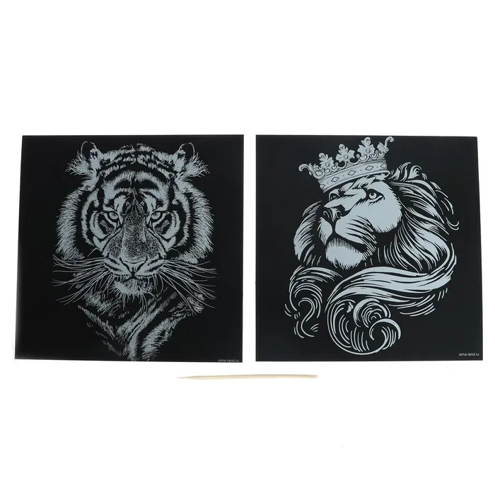 Гравюра представляет собой многослойное панно, покрытое чёрной краской, на которое нанесён контур рисунка. С помощью особого скребка (штихеля), который входит в набор, путём процарапывания и создается гравюра. Новая серия с уникальным дизайном порадует вас разнообразием рисунков.