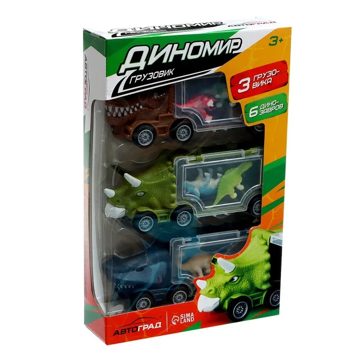 Набор грузовиков DINO, 3 шт, с динозаврами — Характеристики
