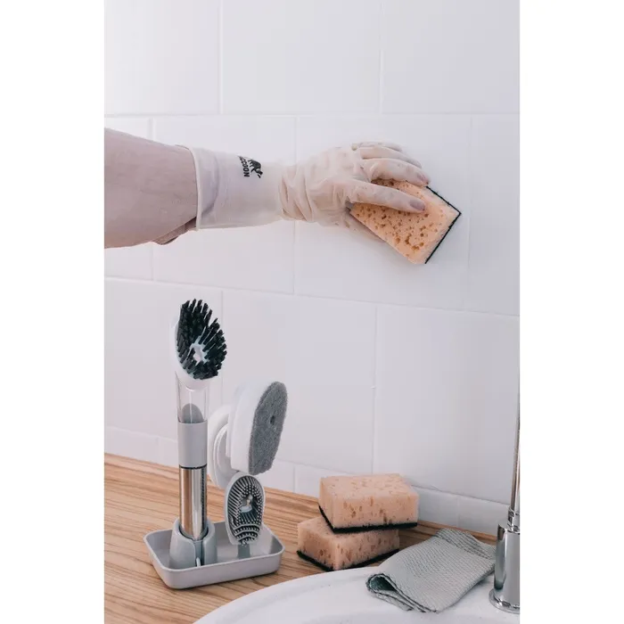 - Эстетичный внешний вид: бежевый цвет губок вписывается в любой кухонный интерьер, придавая ему стильный и аккуратный вид.
