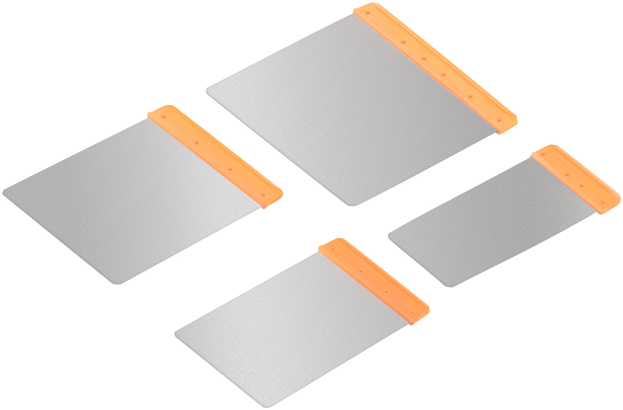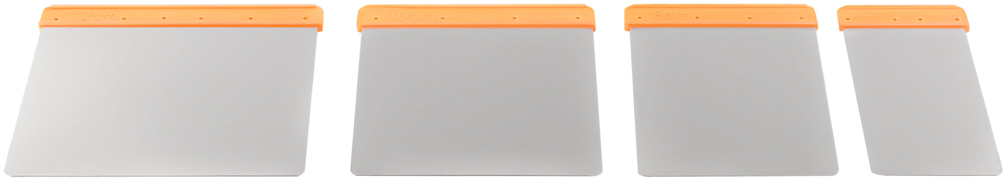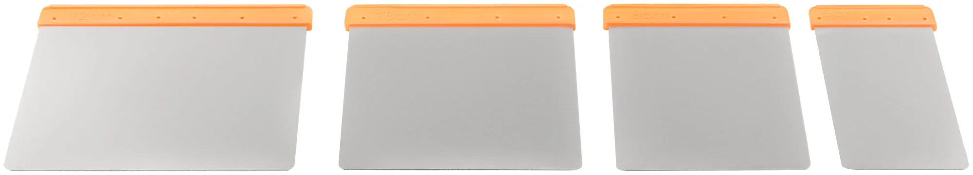 Инструменты изготовлены из высококачественного нержавеющего эластичного листового металла, что гарантирует долговечность и устойчивость к коррозии. Каждый шпатель оснащен удобной пластиковой ручкой для комфортной работы.