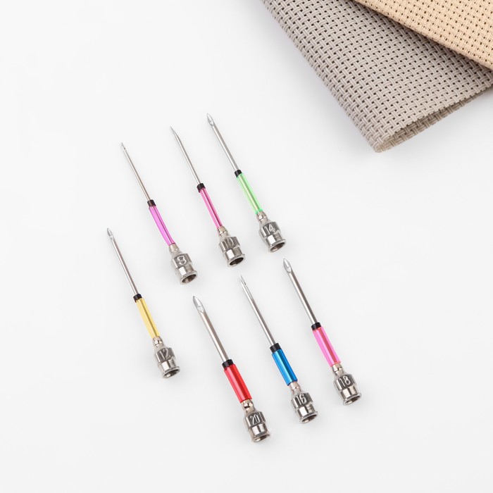 Игла для вышивания, для ковровой техники, d=1.3/1.6/2.2 мм, с нитевдевателями, белая, синяя