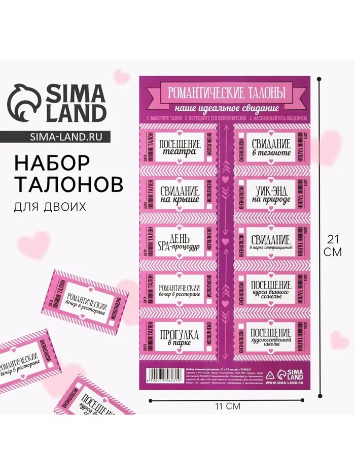 Набор игровой для двоих «Идеальное свидание», 10 талонов, 11 х 21 см