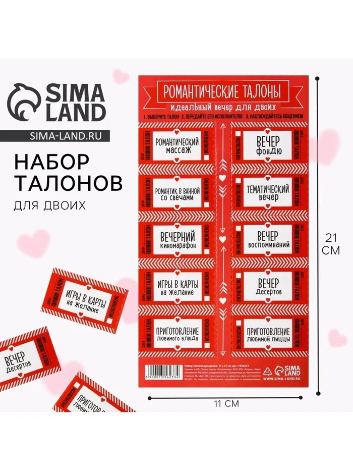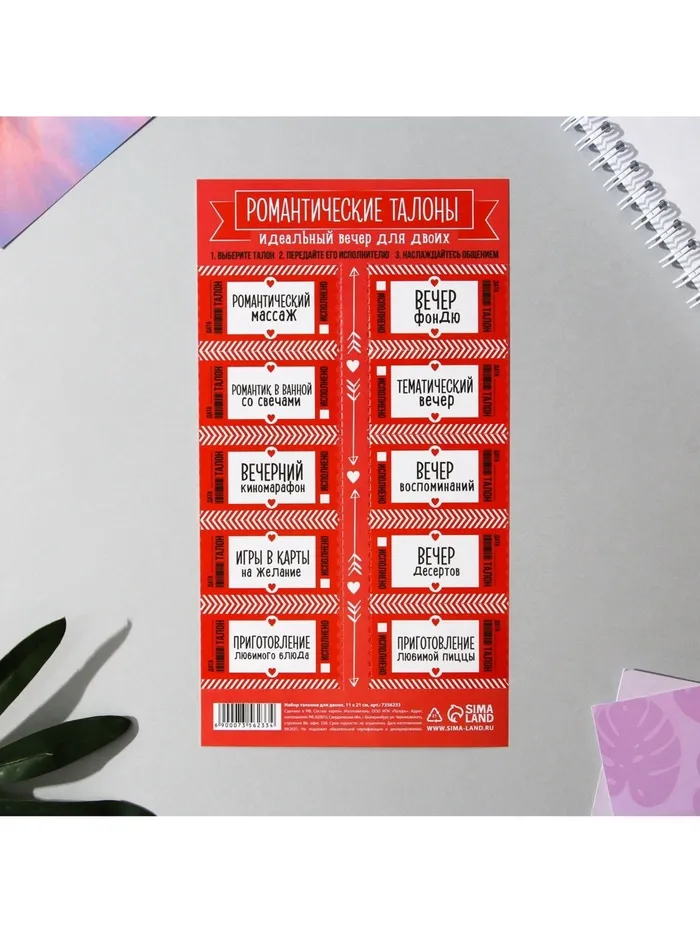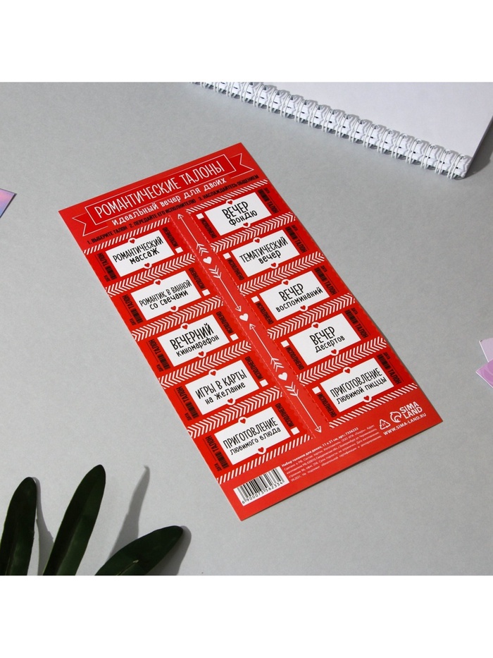 Набор талонов для двоих «Вечер для двоих» , 10 талонов, 11 х 21 см
