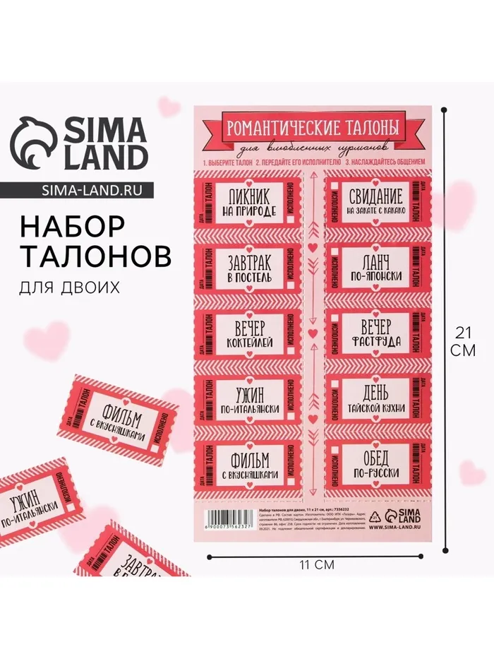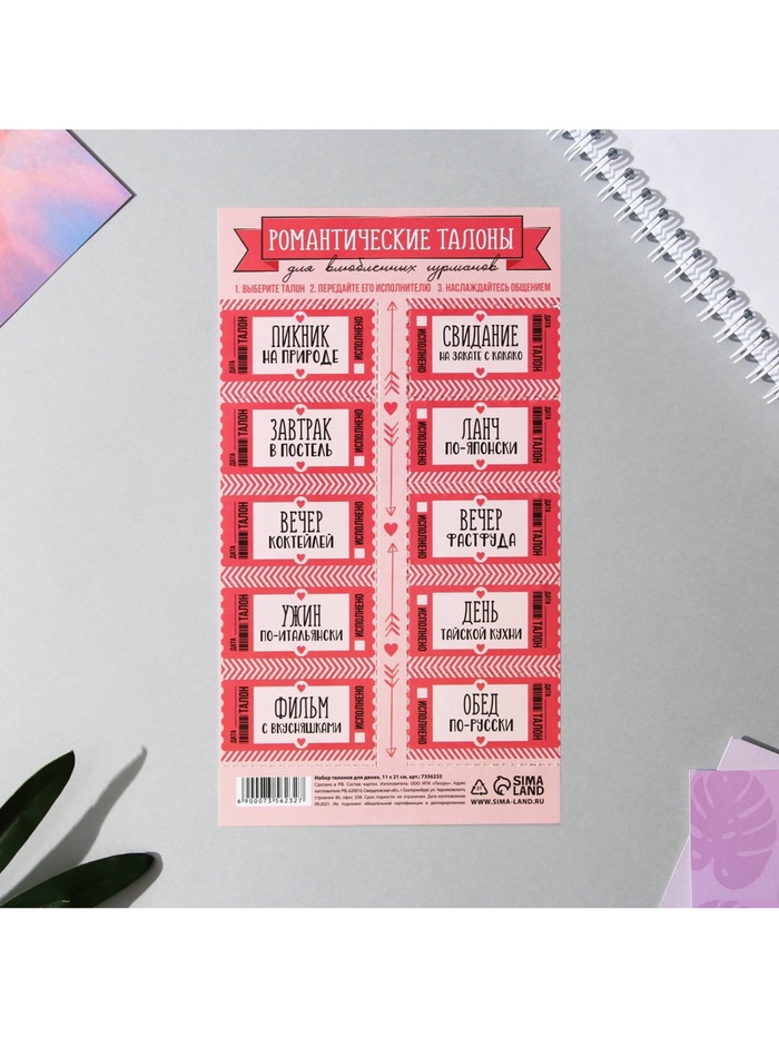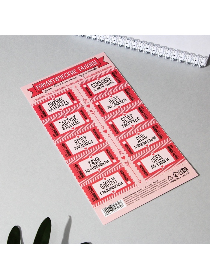 Набор талонов для двоих «Влюбленные гурманы», 10 талонов, 11 х 21 см