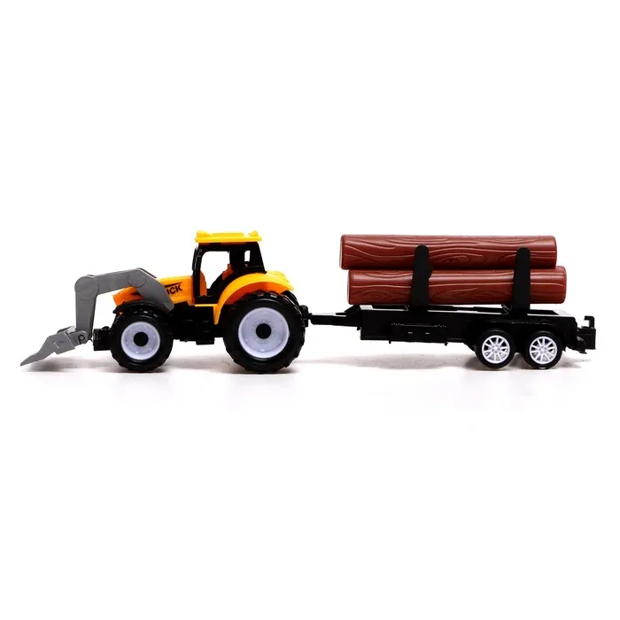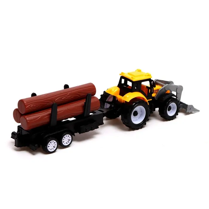 - В комплекте есть три бревна и маленький трактор, их можно легко снять с прицепа.