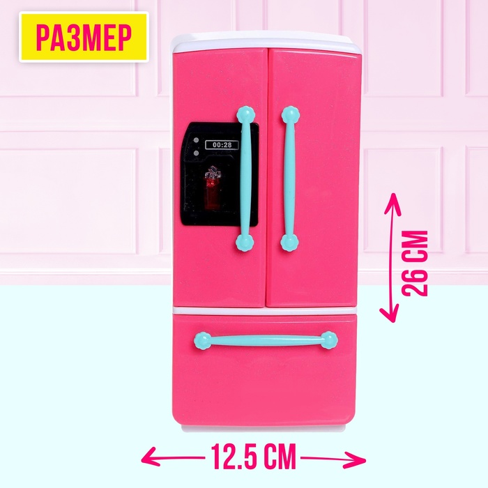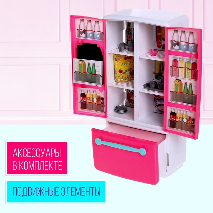- Холодильник выполнен из прочного пластика, выглядит аккуратно и правдоподобно. Дверцы открываются, предметы можно переставлять — игра становится ещё увлекательнее.