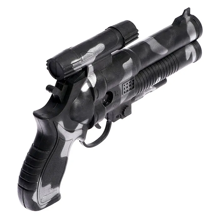 Размеры предметов:пистолет 22 х 2,5 х 15,5 см, жилет 35 х 44 см, вырез 20 см.
