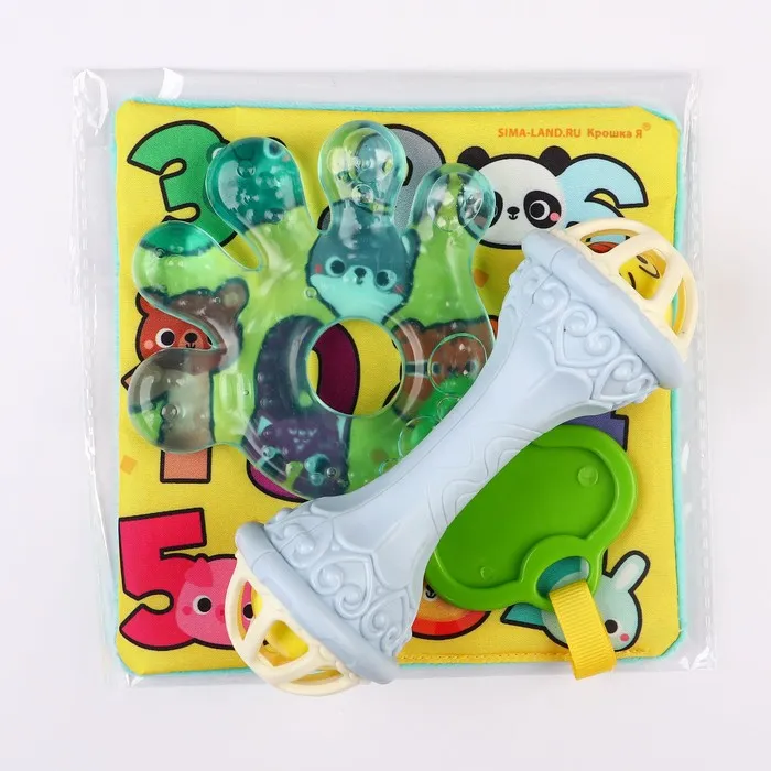 Набор из 3-х развивающих игрушек станет прекрасныи подарком крохе, который только начинает познавать мир, веселая погремушка, прорезыватель и платочек - шуршалка станут прекрасным, занимательным развлечением!