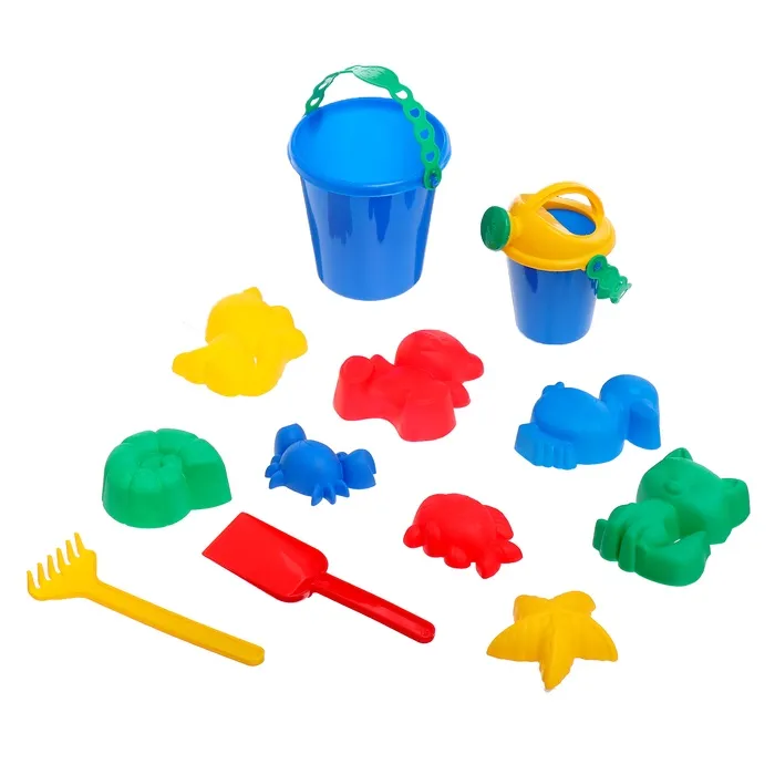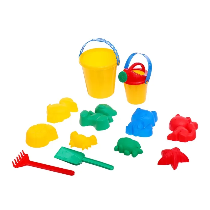 Набор игрушек для песочницы, 12 предметов: 8 формочек, совок, лейка, грабли, ведро, МИКС — Характеристики