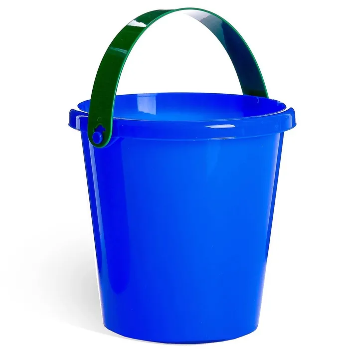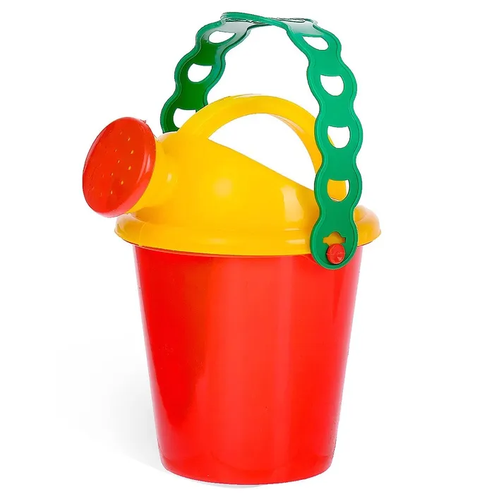 - Ведро — вместительное и удобное для переноса песка и воды.