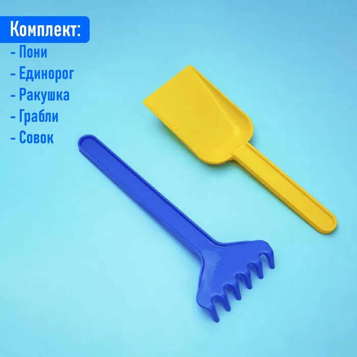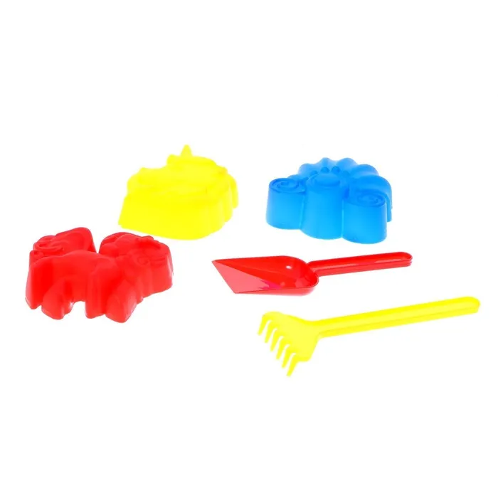Набор игрушек для песочницы, 5 предметов: 3 формочки для песка, грабли, совок — Характеристики