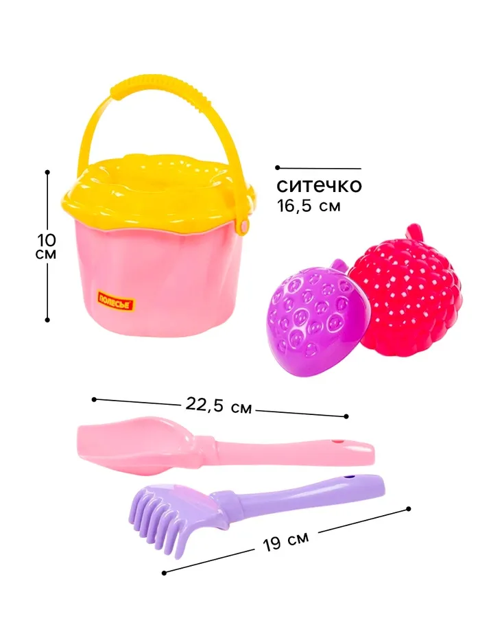 Набор игрушек для песочницы, 6 предметов: ведро, ситечко, лопатка, грабельки, формочки, МИКС — Характеристики