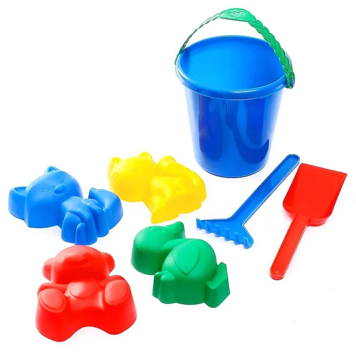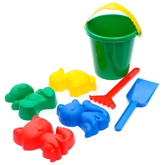 Набор игрушек для песочницы: ведёрко, 4 формочки для песка, грабли, лопатка, МИКС — Характеристики