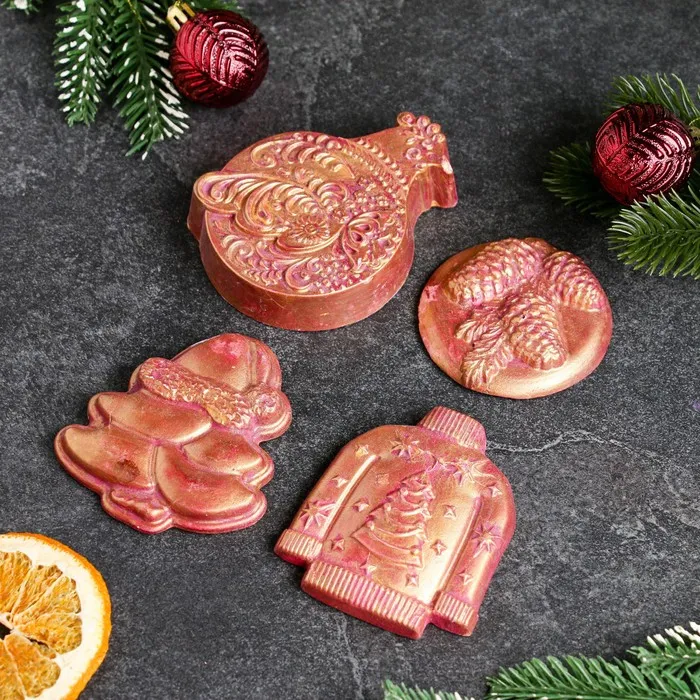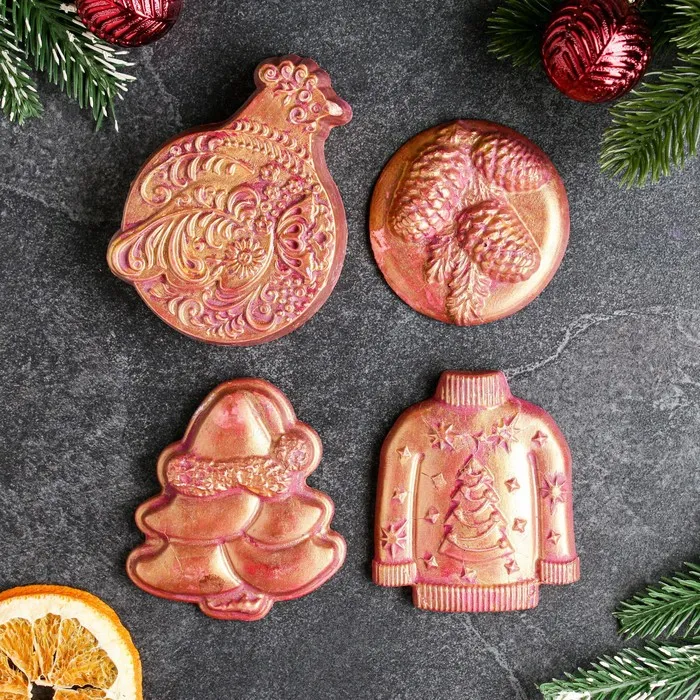 Набор игрушек на елку "Русский" 4шт, бордовый с золотым — Характеристики