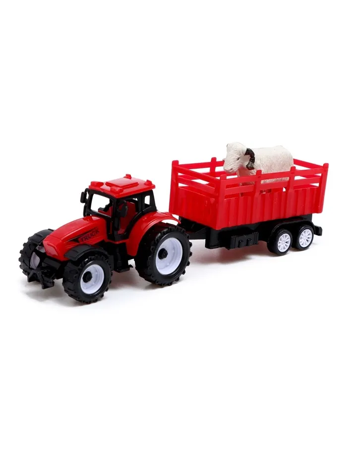 - В наборе: 3 инерционных трактора с прицепами, а также минитракторы и фигурка животного.